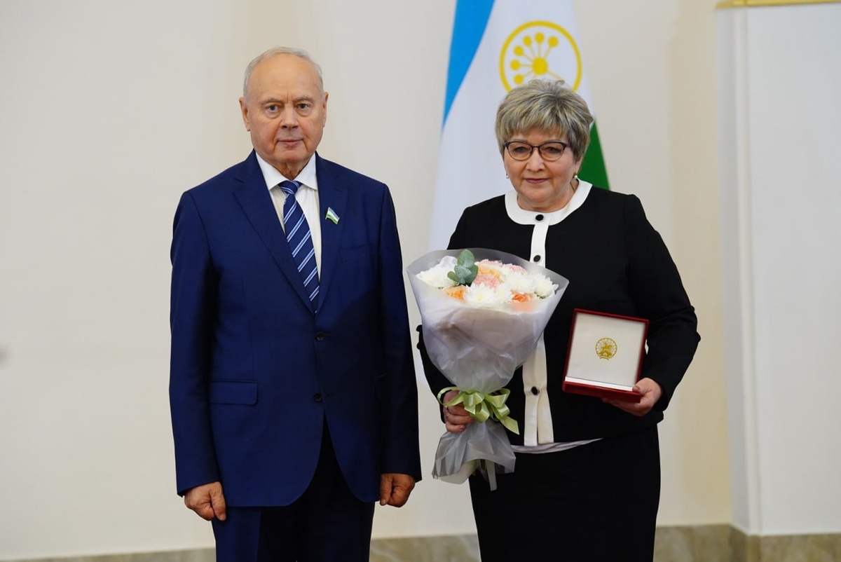 ✅Удостоена почетного звания 🇷🇺В преддверии Дня народного единства председатель Госсобрания – Курултая Башкортостана Константин Толкачев в колонном зале вручил государственные награды России и республики. Орденов, медалей, почетных званий и других знаков отличия удостоились около 60 человек. 🔔Почетное звание «Заслуженный экономист Республики Башкортостан» было присвоено Зульфие Яхиной, начальнику отдела исполнения бюджета финансового управления Администрации МР Белебеевский район РБ. 🔊Зульфия Фоатовна работает в финансовой сфере почти 40 лет. «При формировании и укреплении бюджета района необходимо целенаправленно распределять бюджетные средства, контролировать их использование. Работа у нас сложная, поэтому на наших плечах лежит большая ответственность. Люблю свою работу. Коллектив у нас очень дружный. Сегодня я испытываю радость от того, что мой многолетний труд в этой отрасли был оценен государством», – сказала она.