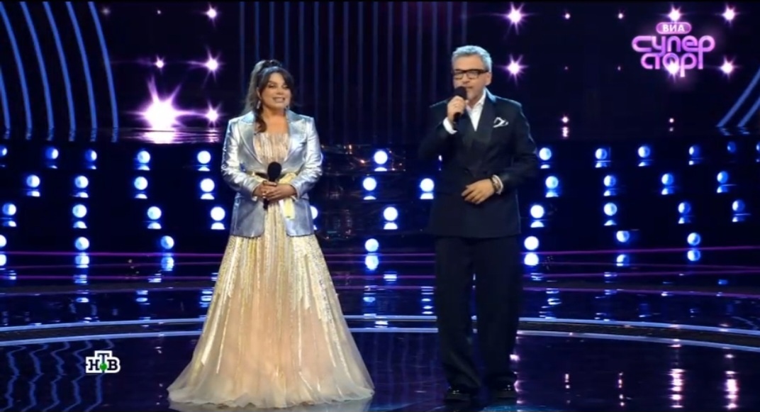Ведущие нарядные ради финала. Натали в злате-серебре. Аж слепит:))