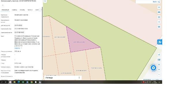 Название: земельный участок с кадастровым номером 23:07:0811010:1033, площадью 589 кв