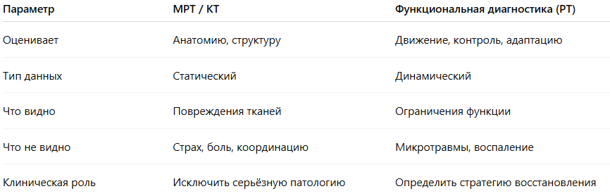 Без иллюзий: МРТ показывает структуру. Physical therapy восстанавливает жизнь.