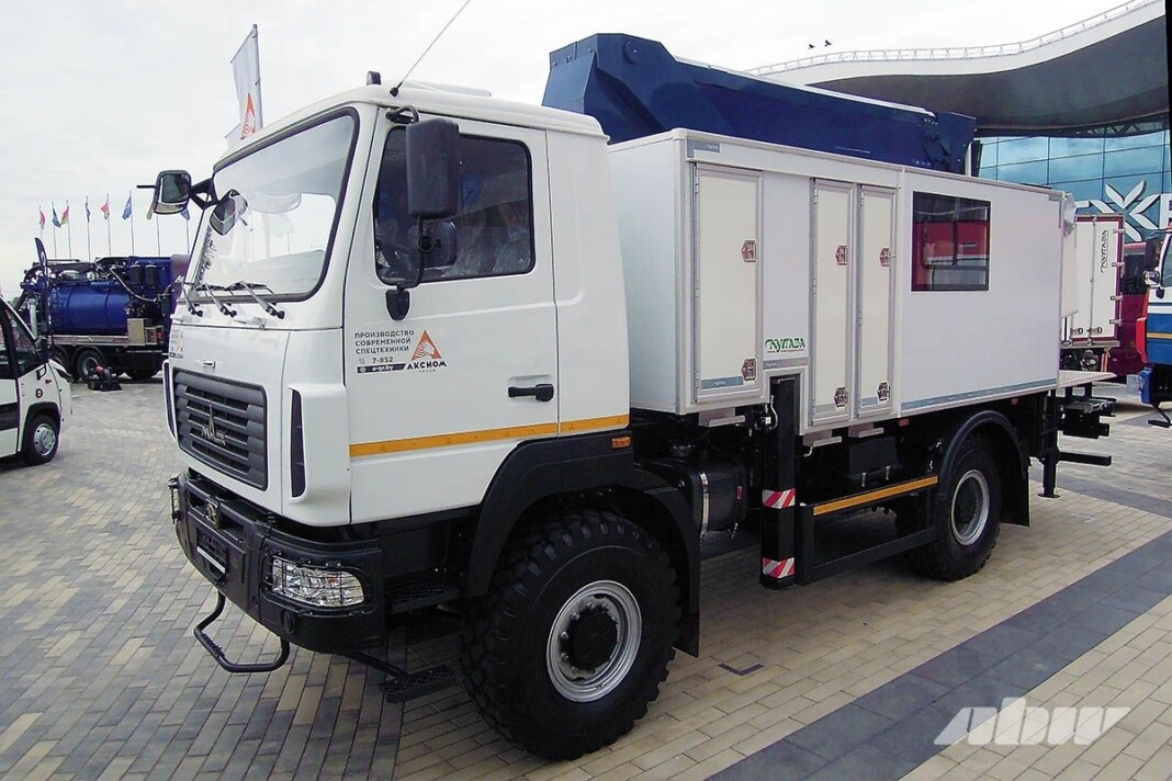 ООО «Аксиом-Групп» представило уникальный мобильный комплекс, который совмещает функции полноценной мастерской и автовышки для обслуживания линий электропередачи. В основе спецмашины лежит полноприводное шасси МАЗ-5302C5 (4×4) с мощным 328-сильным дизелем ЯМЗ-53603. Благодаря высокому дорожному просвету, блокируемым дифференциалам и крупным колесам (14.00R20), этот автомобиль уверенно чувствует себя даже на сложном бездорожье и при неблагоприятной погоде. Полная масса машины достигает 16 тонн. Читать на сайте: МАЗ-5302C5 превратили в уникальный мобильный комплекс для ремонта ЛЭП: мастерская и автовышка в одном фургоне Главная изюминка конструкции — интеграция гидравлической автовышки непосредственно с кузовом-мастерской. Опорная часть подъемника закреплена внутри фургона на раме, а рабочая секция размещена над кунгом. Телескопическая стрела способна поднимать специалистов на высоту до 17,5 метров, а максимальный вылет составляет 12,9 метра. Люлька выдерживает до 265 кг, что позволяет р