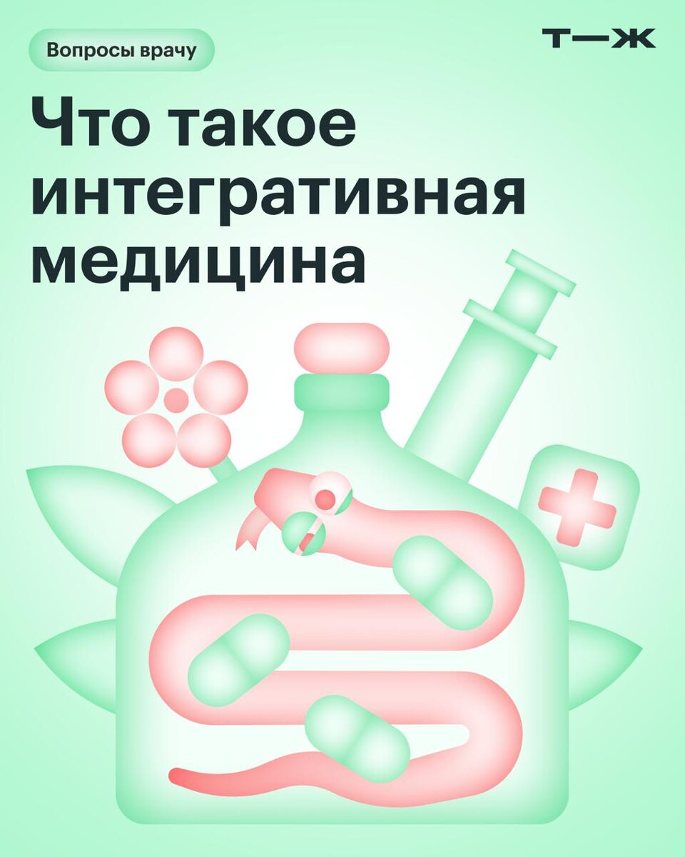 «Классическая медицина лечит симптомы, а не человека, а интегративная — укрепляет организм и рассматривает проблему комплексно» Встречали такое утверждение? Интегративной называют медицину, которая сочетает методы официальной медицины и альтернативные: гомеопатию, иглоукалывание, остеопатию, диетотерапию и десятки других. Врачом интегративной медицины может назваться как доктор, опирающийся на доказательные подходы и иногда советующий массаж или витамины, так и «специалист», который назначает бесполезные анализы и выписывает длинный список БАДов. Оба сочетают официальные методы с альтернативными, но разница очевидна. Кажется, что нет ничего страшного, если доктор придерживается интегративного подхода: если пациент не отказывается от основного лечения, дополнительные практики не причинят вреда. На деле все не так позитивно. Подробно объясняем, почему к интегративной медицине стоит относиться настороженно: https://t-j.ru/z-tg/integrative-medicine