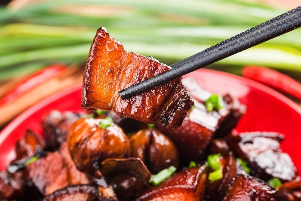 рубрика #китайскаякухня Дважды приготовленная свинина, или, дословно, «мясо, вернувшееся в котел», — традиционное блюдо провинции Сычуань, рецепт несложный, все в названии. Увесистый кусок свиной грудинки сначала отваривают до полуготовности в бульоне с добавлением соевого соуса и рисового уксуса, потом насухо обтирают, режут на тонкие ломтики прямо с кожей и обжаривают в воке до золотистой корочки, в процессе отправляя к ней другие ингредиенты: зеленый лук, чеснок, соевый соус, вино, имбирь, бобовую пасту. Точный набор специй каждый повар подстраивает под себя, но в финале у свинины должны быть солоновато-острый вкус, хрустящая корочка и чуть уксусный запах. Легенда с этим блюдом связана довольно пугающая: в старину вареную свинину использовали как подношение духам предков и приносили на их могилы, но мясо было слишком дорогое, чтобы обращаться с ним расточительно, поэтому свинину возвращали домой, доготавливали и съедали. Проще говоря. Хайнань
