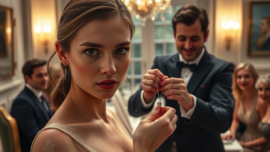В комнате стояла мёртвая тишина. Гости замерли с поднятыми вилками, их лица выражали шок и недоумение. Дима развернулся и, держа ожерелье на ладони, как величайшую драгоценность, подошёл к своей сестре. Лена смотрела на него с обожанием и слезами счастья на ресницах.