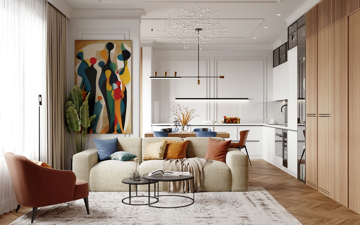 Классика, которая до сих пор актуальна — но при одном условии: грамотное зонирование. Если просто снести стену (или не строить ее, если речь о новостройке без межкомнатных перегородок), может получиться хаос. Если всё продумать — появится просторная «жилая зона», где удобно и готовить, и принимать гостей.