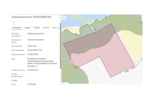 Название: Земельный участок, площадью 241835кв.м., К№ 16:30:070401:324, расположенный по адресу: Российская Федерация, Республика Татарстан, Нижнекамский муниципальный район, Старошешминское сельское поселение, категория земель – земли сельскохозяйственного назначения; разрешенное использование – растениеводство. Канал: Госземля Республика Татарстан Область: Респ Татарстан Район: м.р-н Нижнекамский Населенный пункт: с.п. Старошешминское Локация: Смотреть на карте ВРИ: Растениеводство Кадастровый номер: 16:30:070401:324 Кадастровая стоимость: - Вид сделки: Аренда Площадь: 241835 м² Начальная цена: 3485.00 руб. Дата завершения: 01.12.2025 Подробнее: ГИС ТОРГИ #госземля #земляотгосударства #земля #земельныйучасток #земельныеторги #торги #аукцион #арендаземли #аренда #республикататарстан