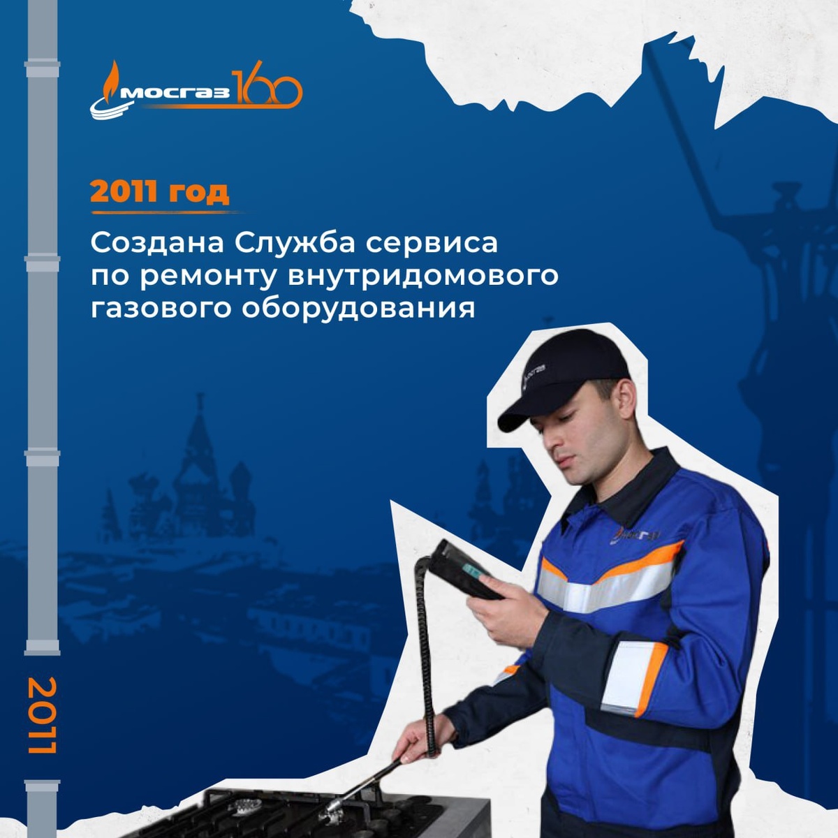 🔥Погружаемся в историю газового хозяйства: что важного произошло в 2011 году? 🛠В МОСГАЗе появилась Служба сервиса по ремонту внутридомового газового оборудования. С того времени команда Службы сервиса помогает москвичам оперативно устанавливать и ремонтировать газовое оборудование. #ГазовомуХозяйствуМосквы160 @aomosgaz