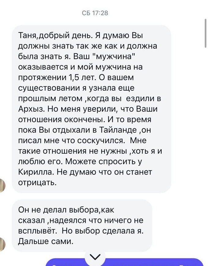 В тот день, когда я получила это сообщение, внутри будто всё перевернулось. Голова отказывалась верить, а сердце всё знало заранее. Это были мои первые отношения после развода. Мы познакомились почти два года назад, в горах. В наши планы не входил роман с продолжением, но так вышло, что мы живём в одном городе — да ещё и рядом друг с другом. Мы с Кириллом (как я тогда думала) были очень похожи. Он понимал меня с полуслова, я — его. Даже молчать рядом было хорошо. Мы всегда были честны друг с другом (как я думала, глупышка). Рядом с ним было спокойно и тепло — как возле камина. Оглядываясь назад, я вижу множество звоночков, которые старалась не замечать. Он часто просил побыть в тишине, а я считала, что в отношениях нужно давать друг другу пространство. Я не ревнивая, всегда доверяю. Даже если в руках телефон партнёра — никогда не полезу туда. Да, он всегда говорил: «Счастье любит тишину», — не позволяя выкладывать наши фото и видео. В какой-то момент я стала чувствовать, что-
