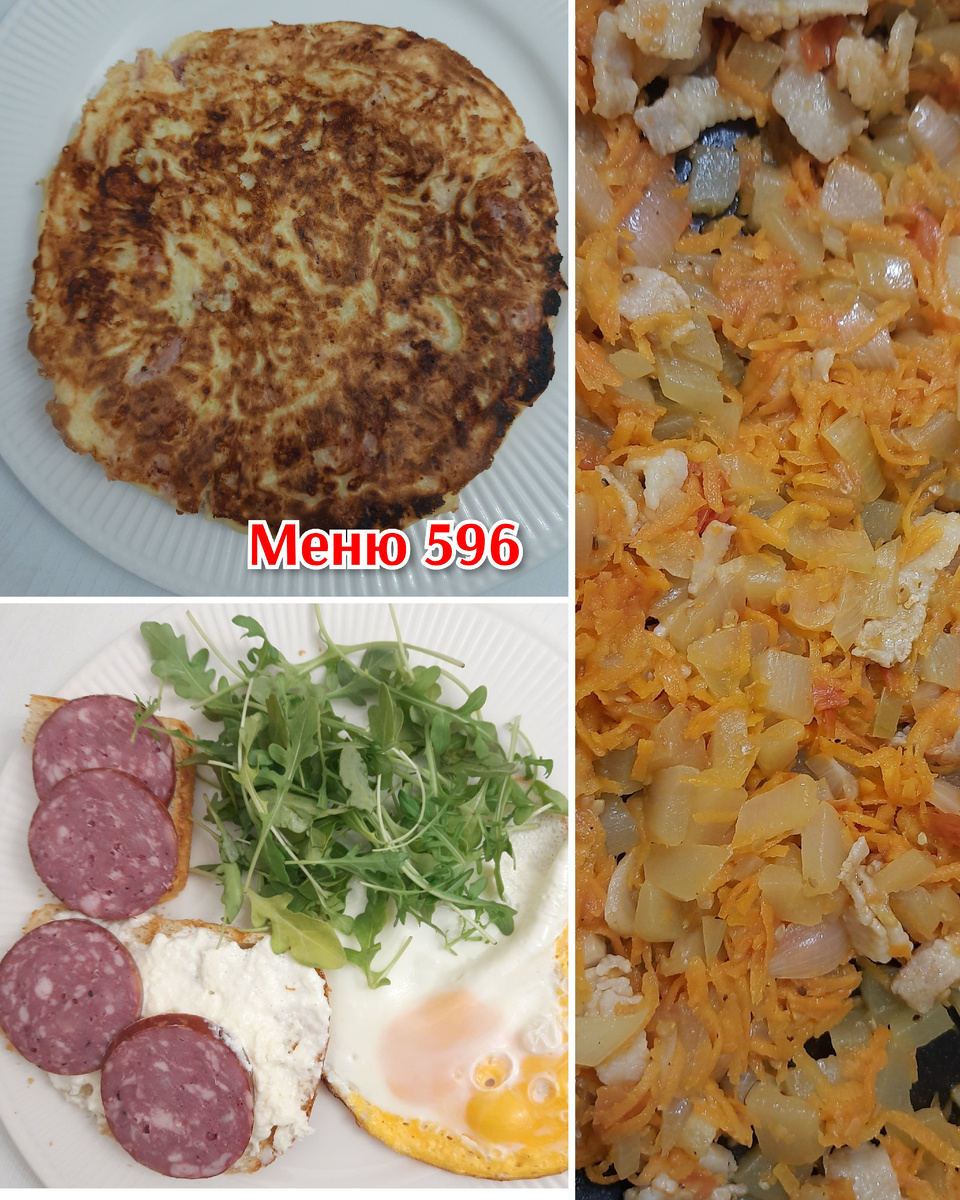 #Завтрак – цикорий с фермерским молоком за кадром. Яичница. Руккола. Бутерброды с колбасой. Один из бутербродов – хлеб на гриле, творожный сыр. И колбаса с рынка от а-ля фермеров-колбасников. #Обед – соте с сырым беконом. В сковороду режу кабачок кубиком, морковь на терке, лук полукольцами. Помидоры крупными кусками. В идеале снять кожицу, я убрала, где смогла. Бекон вот такой. Сырой, не соленый. На жире с бекона все как раз и тушится. Воду не добавляла. Солю. Накрываю крышкой, и на маленьком огне все тушится минут 10. Тут главное, чтобы кабачок стал нежным, а не хрустящим. Периодически помешиваю. Сыра тоже совсем чуть-чуть добавила сверху. Вкусно, но на сырокопченом беконе получается вкуснее. На беконе типа этого: Мой вердикт после всех испробованных вариантов соте – самый вкусный на сырокопченом беконе. Копченая курица и сырой бекон теряют яркость вкуса среди овощей. Их лучше вприкуску есть. Или можно вообще делать без добавок, классический рецепт со сметаной и сыром из меню 587- оче