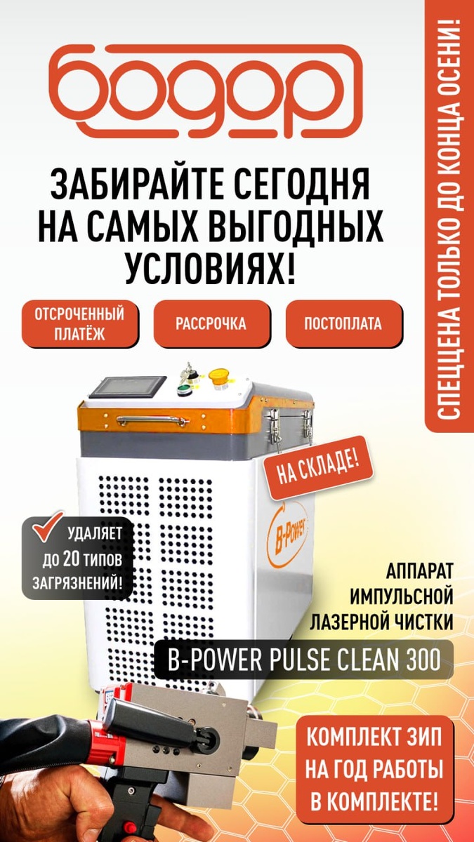 отсрочка, рассрочка, постоплата и комплект ЗИП на год работы в подарок. B-POWER PULSE CLEAN 300 W — это современная установка для промышленной и реставрационной лазерной очистки.
