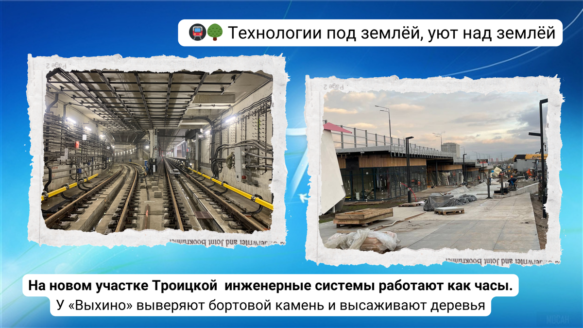 официальные отчеты. Давайте вместе разберемся, что же на самом деле происходит с нашей Москвой. Поехали? Во-первых, поглядим на новый участок 🏡 Троицкой линии. Покажем то, что скрыто от глаз пассажира. ----------------------------------------------------------------------------------- Ну вот, друзья, мы и добрались до финала нашего обеденного мини-репортажа. Знаете, мы тут в редакции немного переживали, не утомили ли мы вас этой кучей информации. Но надеемся, что вы всё-таки нашли