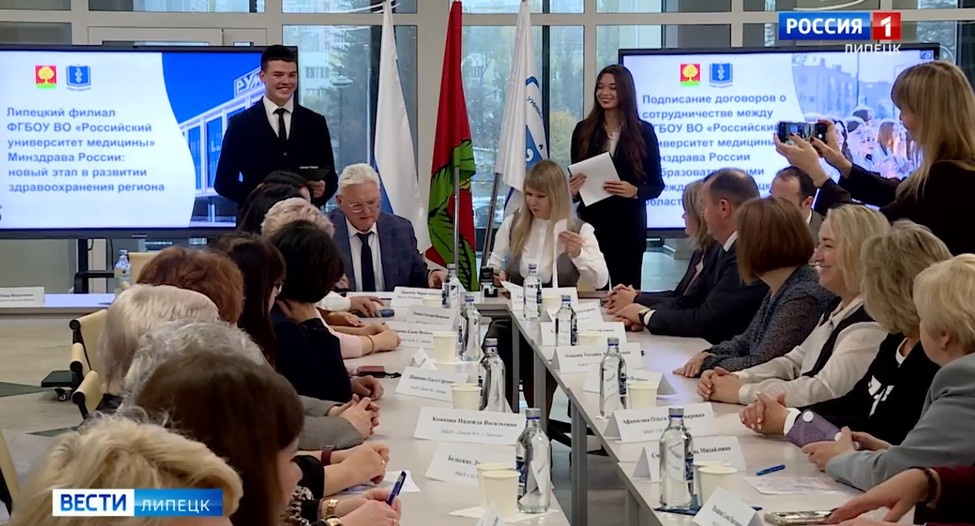 Соглашение о сотрудничестве подписали сегодня Российский университет медицины и 24 школы региона, где есть классы медико-биологического и химико-биологического профиля. Оно подразумевает взаимодействие между вузом и школами в разных форматах. Лекции и семинары, разработка спецкурсов, методическая помощь школам — чтобы готовить старшеклассников к будущей учебе. Речь и о том, чтобы учебно-лабораторная база липецкого филиала Российского университета медицины работала на эту цель. Александр Зубков, директор Липецкого филиала Российского университета медицины: — Профориентационная работа — это в том числе и проведение профильных мероприятий по химии, биологии. У нас прекрасные лаборатории по физике, у нас прекрасные лаборатории по химии. И грех их не использовать в интересах региона. Липецкий филиал Российского университета медицины открылся в регионе 1 сентября этого года. Первый поток студентов учится по специальности «Лечебное дело». Со следующего года планируется и направление «Педиатри