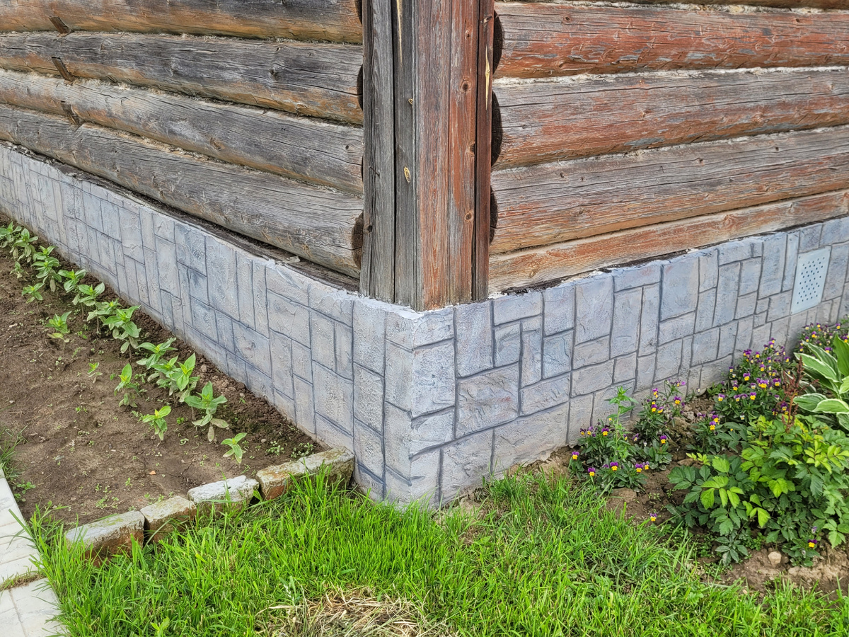 Ещё в прошлый сезон смотрела на свою баню и мечтала, что когда её покрашу, будет она вполне себе прилично смотреться. В этой статье можно увидеть какой была баня. Лето выдалось не очень, возможно по-этому в планах моих вышли заминки и путаница. Планировалось одно, а делалось другое. Когда дел много, за чтобы не взялась, всё хорошо. Ещё в прошлое лето оштукатурила цоколь с одной стороны бани, другую сторону доделала этой весной. Хотелось сделать до посадки цветов. Красила и лачила когда цветы были ещё не высокие. Даже в таком виде баня стала интереснее, а цветы на фоне цоколя смотрятся как картина в обрамлении. Баня была покрашена скорее всего тогда, когда её построили, а это 25 лет тому назад. Солнечная сторона давно потеряла цвет, а от дождей и солнца бревно стало местами почти чёрным. Начала со шлифовки брёвен, затем конопатка швов. Последним этапом перед покраской стала заделка трещин в брёвнах. Клей ПВА и пыль от шлифовки брёвен смешивала в густую массу. И вот такой результат. Н