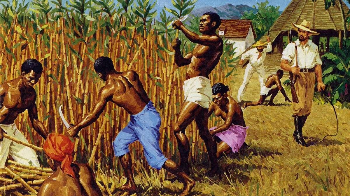 Классический образ рабовладения предполагает картину, на которой грустный негр стонет под бичом белого плантатора, ибо последний вырвал негра из привычной для него среды, в которой тот жил в гармонии с природой.