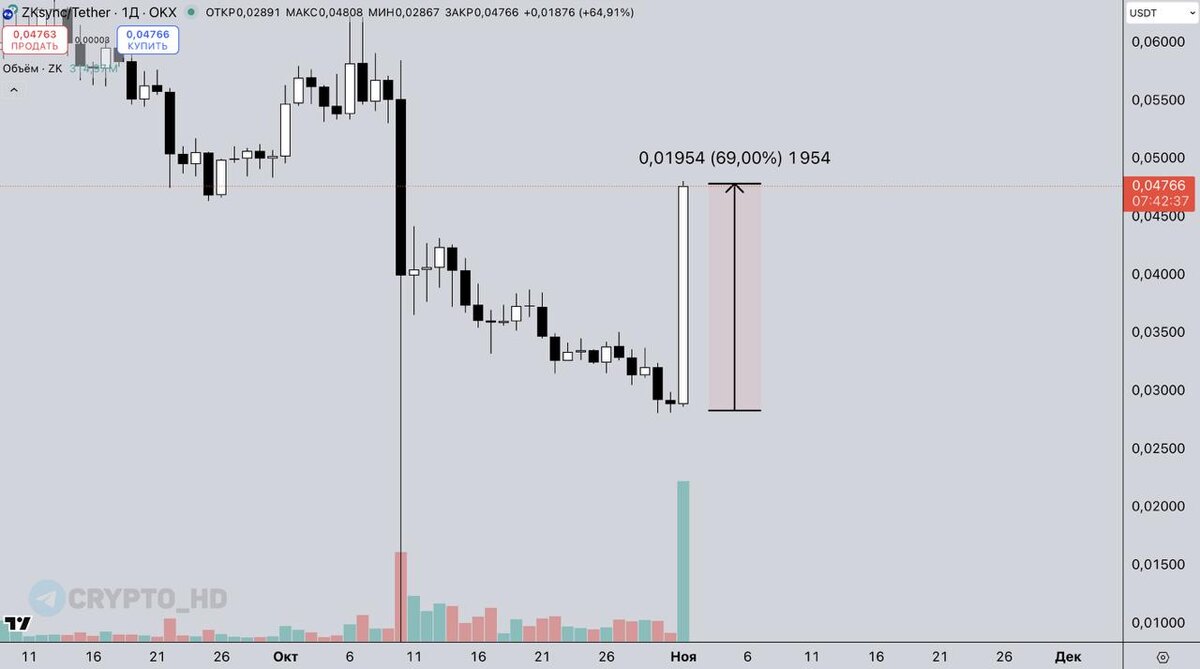 🚀 #ZK (ZkSync) воскрес… +69% за сутки! В ленте X криптопроекта репостят комплиментарные публикации про ZkSynс от Виталика Бутерина. Многие считают, что токен растет за счет успешного апдейта секвенсора блокчейна (Atlas) с 15,000 TPS. Но это маловероятно, так как анонс обновления был опубликован еще 7 октября. Виталик Бутерин - создатель блокчейна Ethereum. Crypto Headlines