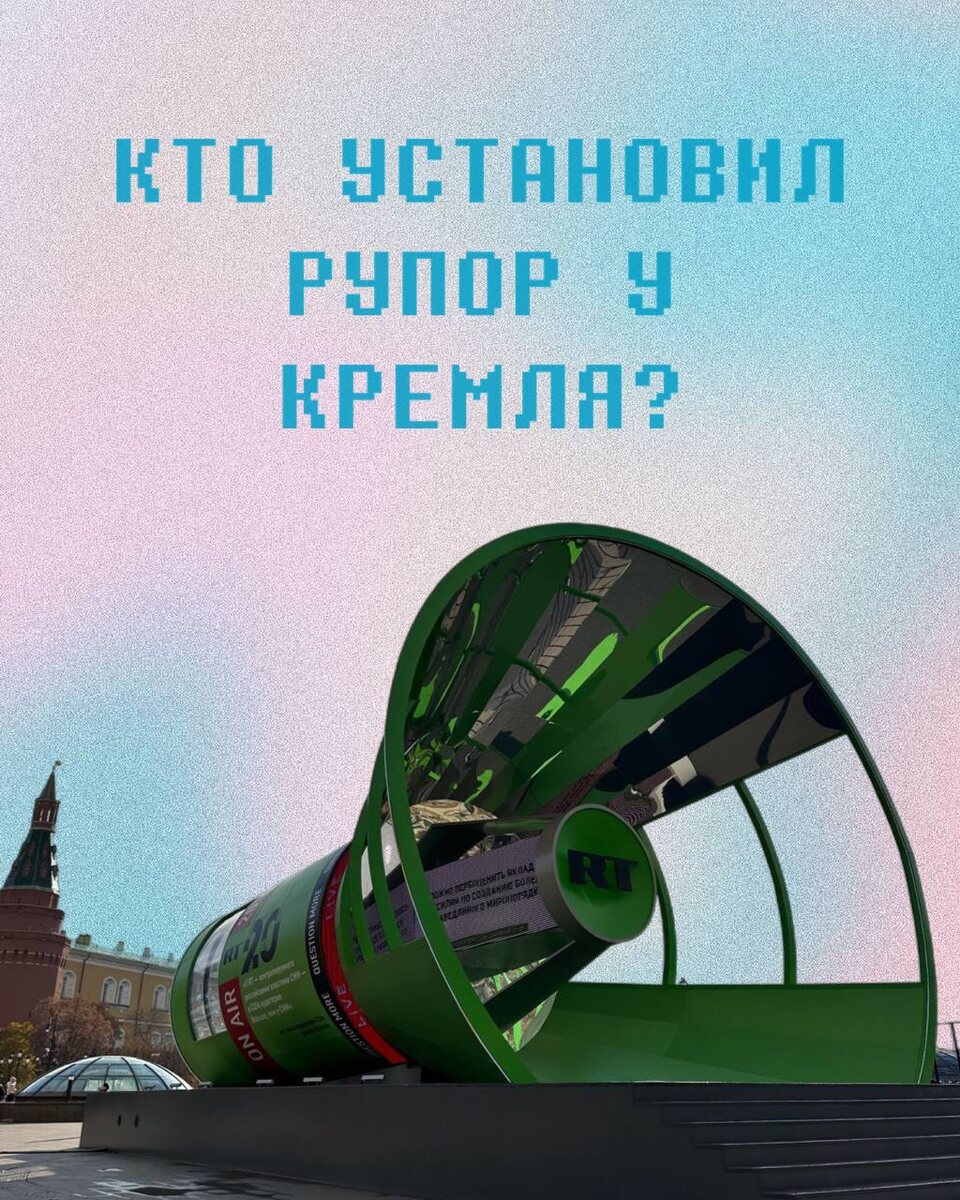 Девочки, одним субботним днем россиян заставили работать (вместо понедельника, но зачем эти нюансы). Оказалась среди этих несчастных работяг и #ЛюбаЕст. Она добралась до работы на московском метро, не встретив там ни одной свободно бегающей крысы, ни одного дышащего воздухом демократии бомжа. Люба вышла из метро «Охотный ряд» и осознала причину этих страданий — пропаганда. И только в странах, где ее нет, например, в США, люди могут свободно решать: спать сегодня под мостом или у витрины в спальном мешке. 📣И пропаганда эта не какая-нибудь эфемерная, а вполне осязаемая. Она в виде жизнерадостного зеленого рупора стоит прямо на Манежной площади, на подступах к Кремлю. Установил его телеканал Russia Today в ответ на слова экс-главы Госдепа Джона Керри о том, собственно, что «RT — это рупор российской пропаганды». 🎥Внутри рупора — студия. Кажется, наши бабушки и дедушки называли это «будка гласности». Сегодня там работали сотрудники канала. Люба помахала одному из них — и тот улыбнулся