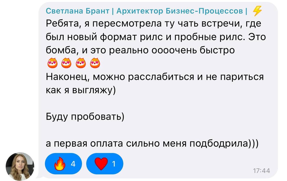 Контент Светы привлёк внимание девушки из Швейцарии, она заинтересовалась её экспертностью и оставила заявку на личную работу.