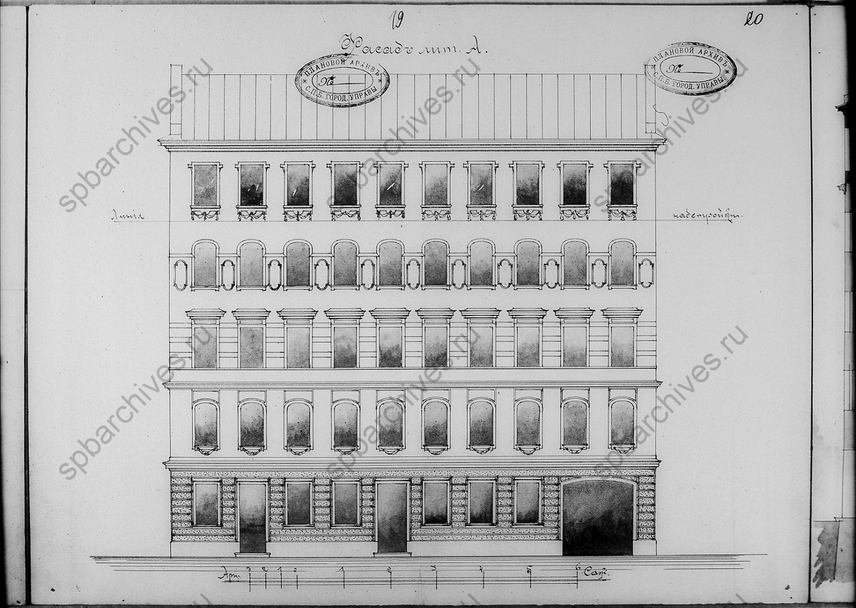 Интересная по своему наполнению квартира продается на 7-й Советской улице, дом 40. Доходный дом братьев Горбачевых, старинное здание было построено в 1899 году Василием Федоровичем Розинским, стиль — эклектика. Чем братья занимались и с чего смогли позволить себе такой дом, выяснить не удалось. В 1909 году здание немного надстраивают и возводят внутренние флигели. В наше время это семиэтажное, видимо, за счет флигелей, здание со смешанными перекрытиями. Здесь на пятом этаже продают интересную квартиру. Вход с улицы, красивая парадная после реставрации, лифт традиционно отсутствует. Пятикомнатная квартира общей площадью 135,6 метров квадратных, два входа, окна на фасад и во двор, раздельные санузлы, потолки 3,2 метра высотой. Любопытно сравнить оригинальный план с современным, сразу задумываешься над происхождением окна в комнате у кухни...) Квартира под ремонт, но есть много исторических деталей: лепнина, анфиладные двери, паркет, окна. Не обошлось здесь без «уплотнения», самую шикарну