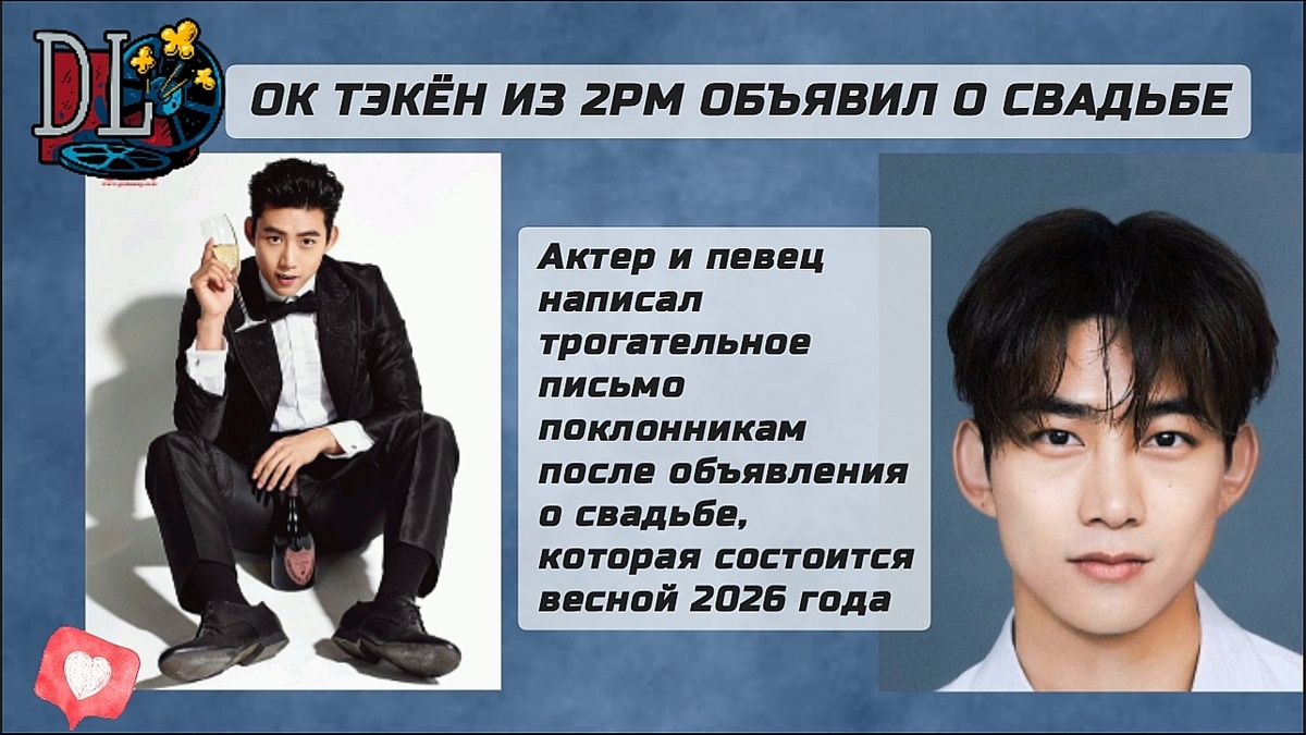 Актер и певец группы 2pm Ок Тэкён объявил о свадьбе, которая состоится весной 2026 года. Он написал трогательное письмо поклонникам 🫶 Поздравляем, он уже давно состоит в отношениях со своей избранницей) Группа 2pm одна из первых, кто познакомил меня с миром К-поп в 2011 году 🫶 Тогда я смотрела дораму Одердимые мечтой, где играла Сюзи, Айю, Ким Су Хён и коллега по группе 2pm Уён (Чан У Ён). Песня послушай биение моего сердца — Heartbeat 2PM из альбом Member's Selection до сих пор является одной из моих любимых.