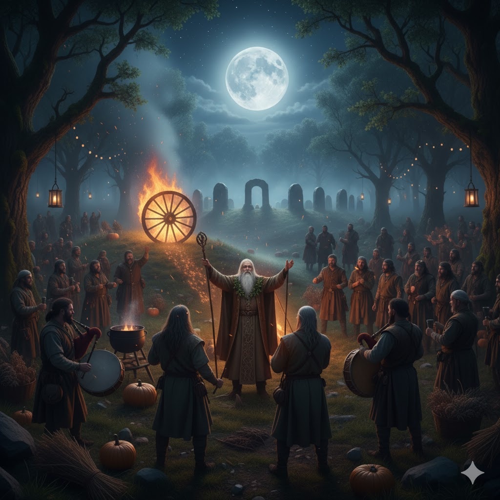 Для кельтов это было не просто веселье — это рубеж между старым и новым временем, между жизнью и смертью. Слово Samhain (произносится «сауэн» или «савань») в переводе с древнеирландского означает «ноябрь». Праздник отмечали ещё во времена, когда у людей не было календарей — только солнце, луна и интуитивное понимание природы. Самайн делил год на светлую и тёмную половины.