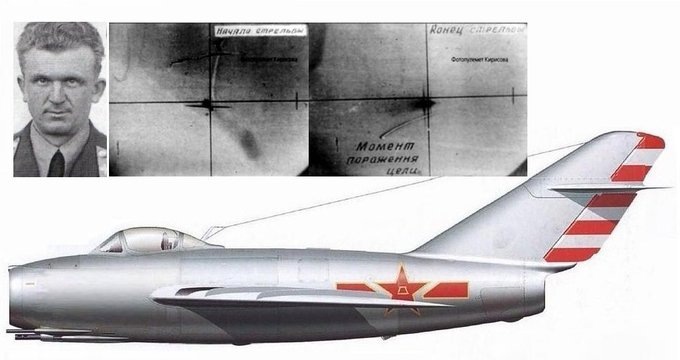 1 ноября 1950 года первая победа в небе Кореи: гвардии лейтенант Семён Фёдорович Хоминич на МиГ-15 сбил американский истребитель F-80 (на