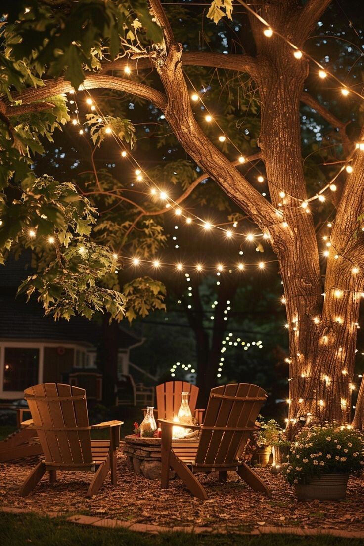 И если просто повесить несколько тёплых лампочек или ретро-гирлянд, сад превращается в место, где хочется остаться.