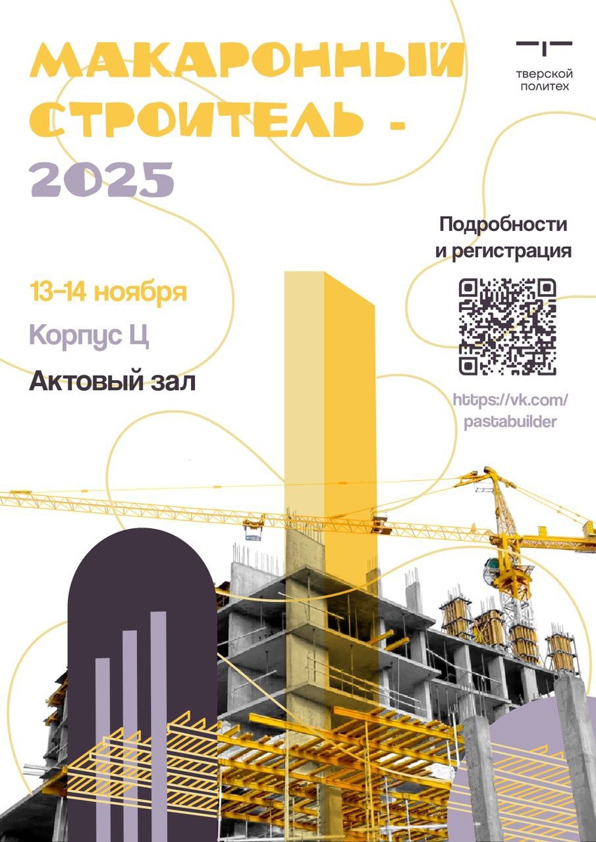 Стартует регистрация на «Макаронный строитель – 2025» Тверской Политех в шестой раз проводит конкурс, раскрывающий конструктивные и креативные навыки.👷♂️ К участию приглашаются студенты всех факультетов тверских вузов и колледжей. 👉 Подробности ЗДЕСЬ
