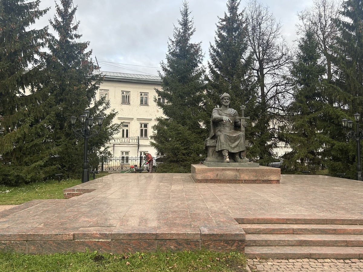 В центре Костромы вырубают ели у памятника Юрию Долгорукому (успели вырубить одну ель, но после протестов жителей прекратили