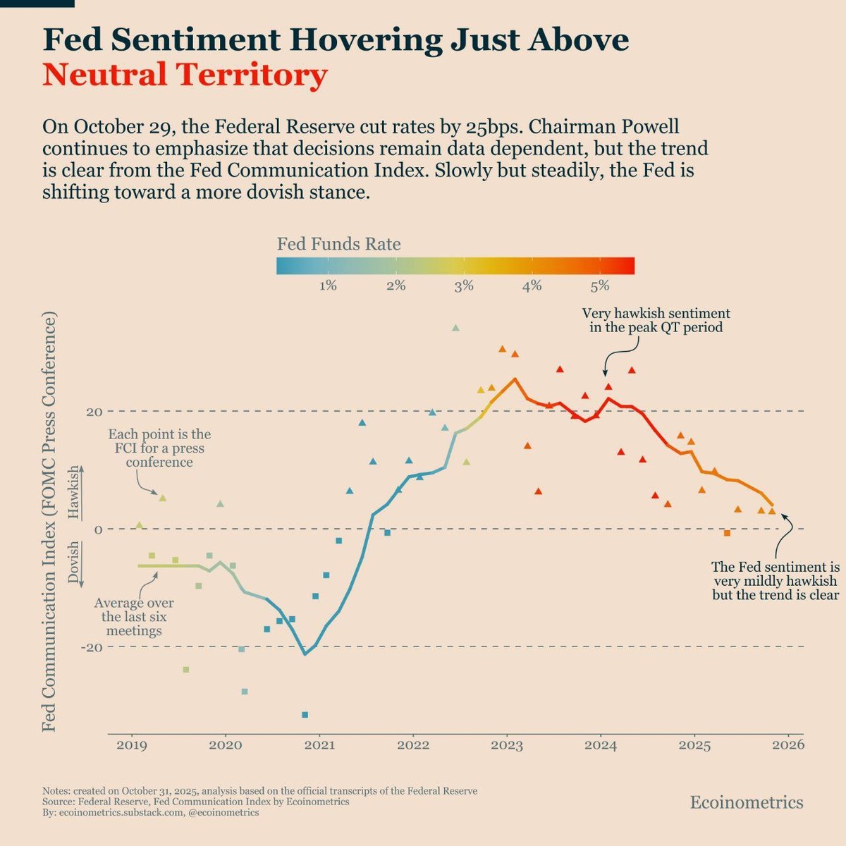 Индекс настроений ФРС, хоть и остается в середине ястребиного диапазона, но имеет явный тренд на смягчение