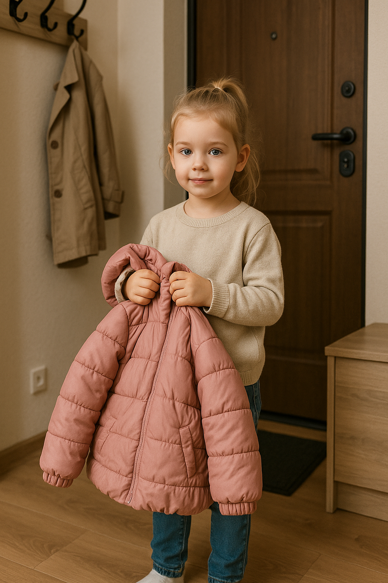 «Какая непослушная девочка! Почему она не хочет просто надеть куртку?»
