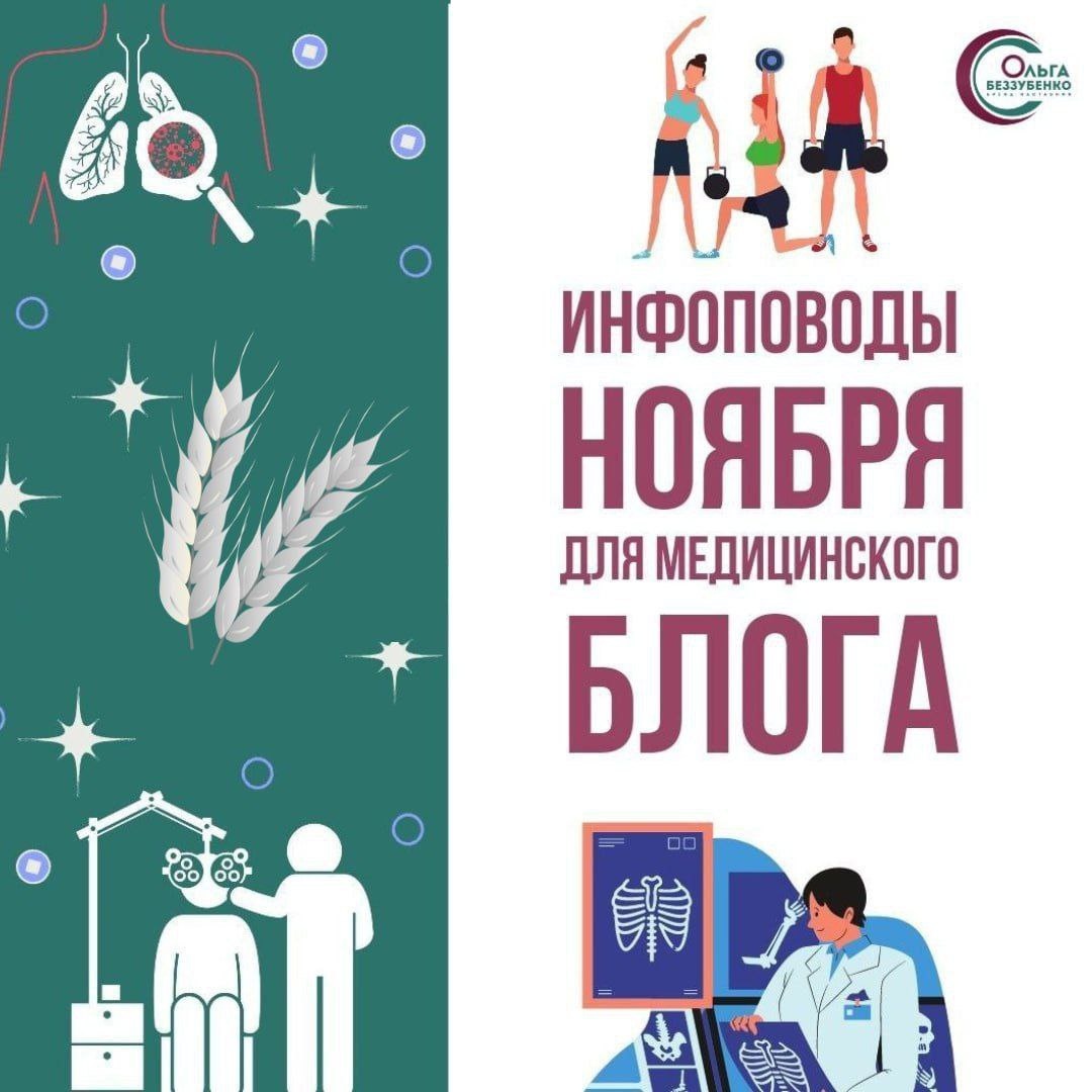 #инфоповод_месяца Вот уже и ноябрь на дворе😊 💚1 ноября Всемирный день вегана (World Vegan Day) Всемирный день мужчин (Mens World Day) 💚4 ноября День народного единства День заботы о себе 💚5 ноября День осведомлённости о стрессе (Stress Awareness Day) 💚7 ноября Мeждунapoдный дeнь мeдицинcкoй физики (International Dаy of Medical Physics) 💚8 ноября Всемирный день рентгенографии (World Radiography Day) Международный день радиологии (International Day of Radiology, X-Ray Day) 💚9 ноября Международная неделя науки и мира (International Week of Science and Peace) 💚10 ноября Всемирный день молодёжи (World Youth Day) Всемирный день борьбы с нейроэндокринным раком (World NET Cancer Day) Вceмиpный дeнь нaуки зa миp и развитие 💚11 ноября День офтальмолога в России Международный день фитнеса 💚12 ноября Всемирный день борьбы с пневмонией (World Pneumonia Day) Международный день патологии (International Pathology Day) 💚13 ноября Всемирный день качества (World Quality Day) Всемирны
