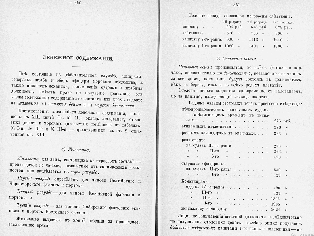 Денежное содеражание офицерских чинов Российского Императорского флота. 1896 год.