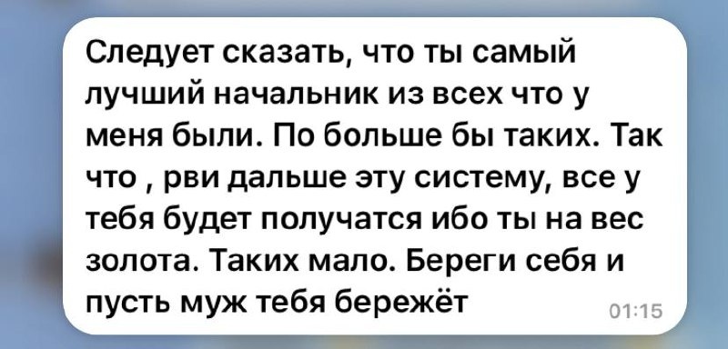 Как же одновременно приятно получать такие сообщения, особенно от людей с большим опытом, и тем более не впервые…и грустно… На немного заставляют задуматься, правильный ли выбор я сделала 🤔