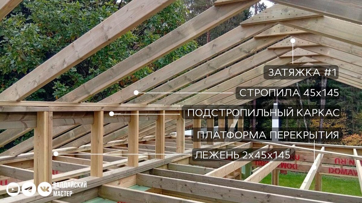 В ответ на пост КРОВЛЯ by Валдайский Мастер Обсудили с вами каркасы и основание дома, перейдем к кровле, опять будет много букАв от меня, но вы держдитесь, не только фановым контентом будем жить: ➕ На межэтажную платформу из доски 45х195мм устанавливаем двойной лежень из доски 45х145мм ➕ Далее устанавливаем подстропильные каркасы с укосами и ригелями / либо систему на подкосах (зависит от проекта) ➕ Монтируем стропила и затяжки 45х145мм (для холодного чердака) / 45х195мм (для утепленных кровель) ➕ Весь монтаж производим на базовые гвозди + уголки и якорные гвозди + частично на гвозди для нейлеров. В ближайшее время будем уходить от уголков и якорных гвоздей в пользу конструкционных саморезов(конечно же Finka) ➕ На стропила монтируем самую лучшую мембрану Валдайский Мастер by Finka ➕ Далее брусок 35х45мм + обрешетка 25х95мм ➕ В случае применения утепленной кровли(дома с мансардой/второй свет) устанавливается брусок 70х45мм ➕ Кровельный пакет Grand Line (в каталоге финские и скандинавс