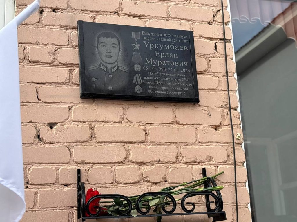 В Соль-Илецке открыли мемориальную доску Герою России Ерлану Муратовичу Уркумбаеву. Церемония прошла в индустриально-технологическом техникуме, где учился боец. Участник спецоперации трагически погиб 22 января 2024 года. Ценой своей жизни он спас своих подчиненных и защитил вверенный ему радиолокационный комплекс. За проявленный героизм указом Президента России Ерлану Уркумбаеву присвоено звание Героя Российской Федерации. В память о бойце СВО на территории техникума высажена аллея. В этот же день прошла благотворительная ярмарка, вырученные средства от которой будут направлены на поддержку участников специальной военной операции. В мероприятиях приняли участие глава округа Сергей Савченко и заместитель министра образования Оренбуржья Вячеслав Коваленко. Фото: тк Сергея Савченко 12+