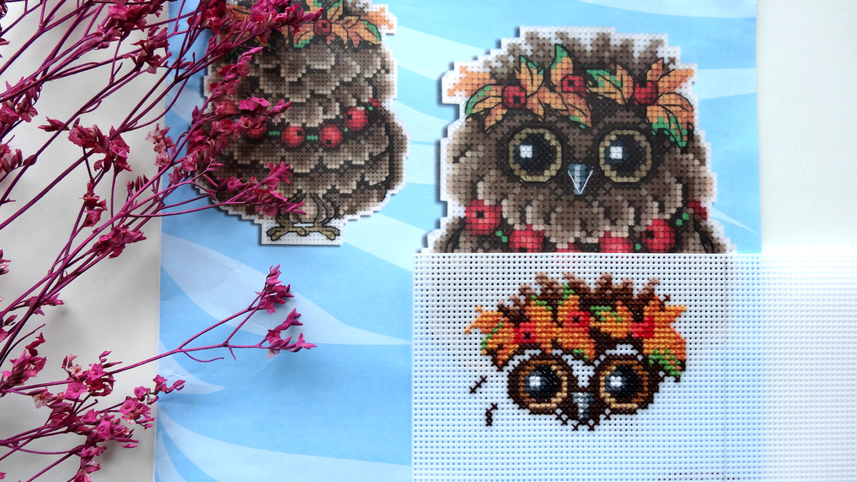 В работу брала две вышивки. У Совушки появились глазки.