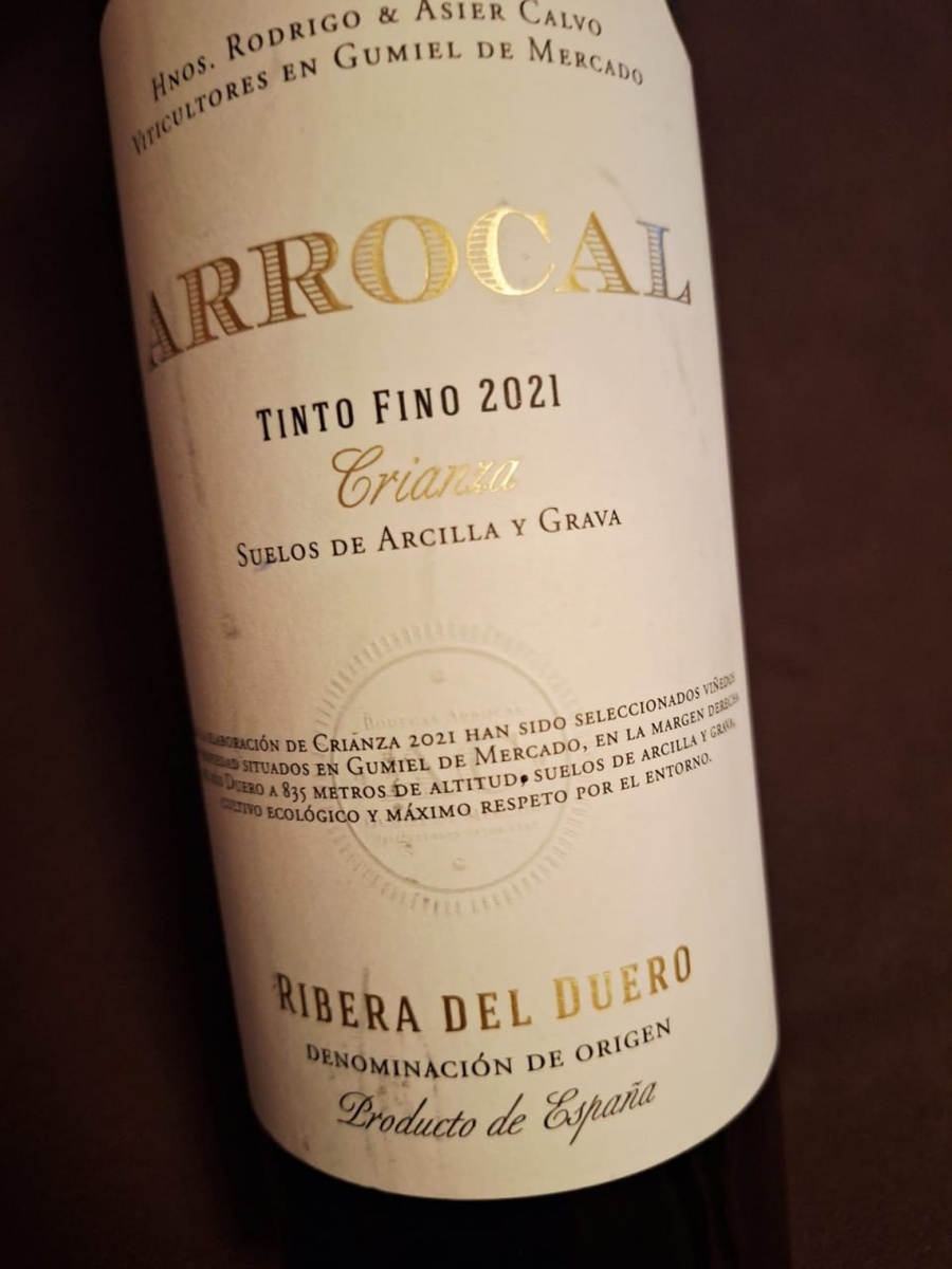 Arrocal - 12 Meses En Barrica Tinto Fino Crianza 2021 Для того, чтобы попробовать новую для себя бутылку темпранильо из Рибера дель Дуэро необязательно ехать в Испанию. У нас есть сеть магазинов "Отдохни" в которых имеется почти вся линейка творений винодельни Arrocal. И у нас на столе весьма серьезная вещь - тинто фино урожая 2021 года, которая выдержана 12 месяцев в бочке. На мой взгляд, ее главная характеристика - рустичность. Эдакая нарочитая брутальность и ершистая неаккуратность. Она сделана именно с эдаким вызовом, откровенно намеренно. Несколько попробованных этой осенью вин из Рибера дель Дуэро были мощными, но аккуратными и даже изящными. Тут - мощь напоказ! Это очень мужской напиток по характеру. Мяса мне давайте под него! Если посмотреть на другие его составляющие, то вино классическое для Риберы дель Дуэро - сочный чернослив, какао, табачный лист. Высокий алкоголь демонстративно не спрятан, но при этом не торчит и спиртуозности нет. Хорошее вино! Однозначно стоит пробоват