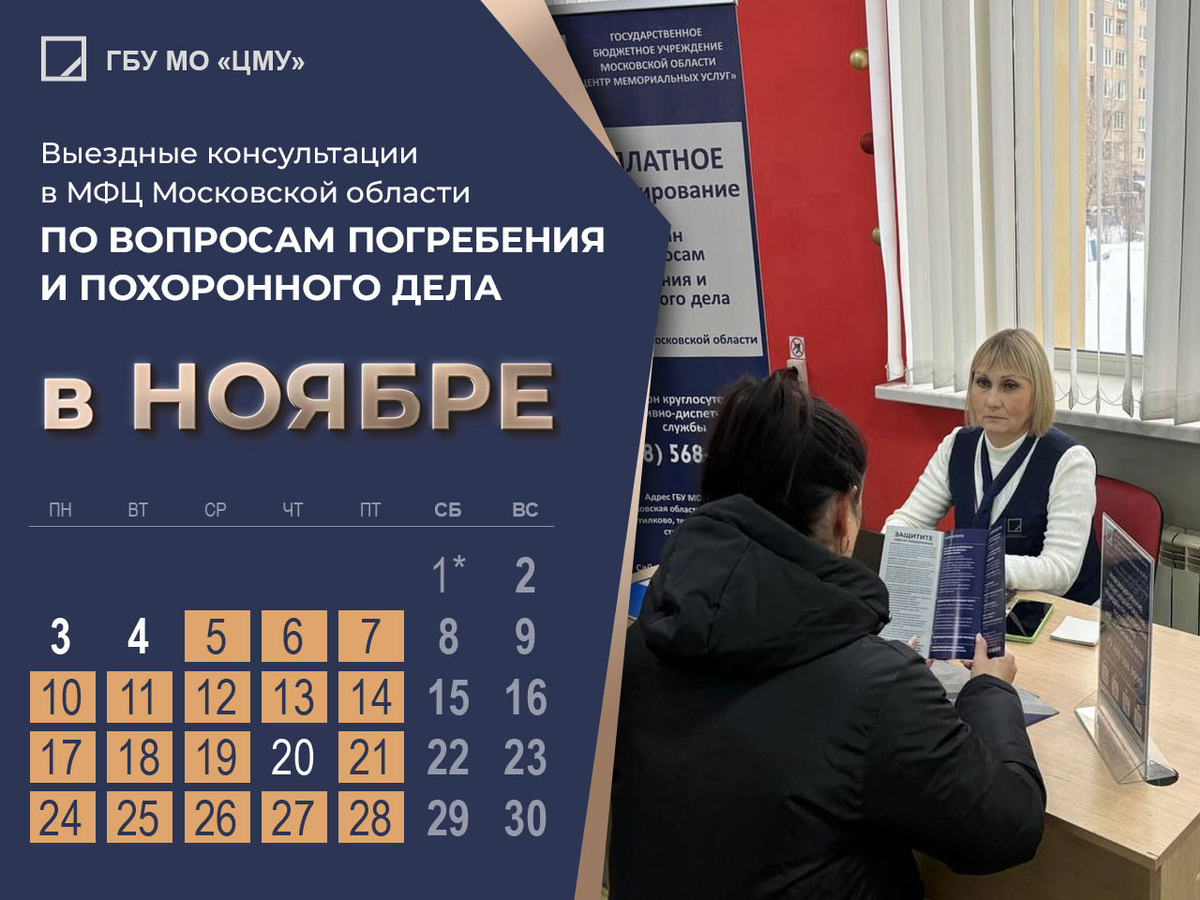 Выезды специалистов ГБУ МО «Центр мемориальных услуг» в МФЦ Ноябрь 2025 года