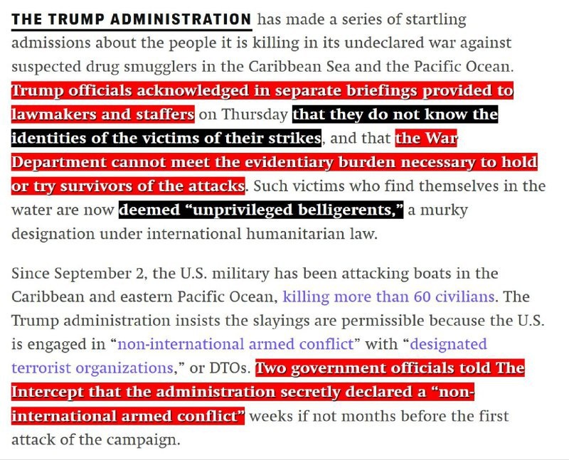 Военная Туманность: США наносят удары в Карибском море, а Вашингтон не знает, кого убил 💣💥 С начала сентября 2025 года Военно-морские силы США проводят интенсивные военные операции против маломерных судов в Карибском бассейне и восточной части Тихого океана, официально заявляя о борьбе с наркотрафиком, который якобы идет из Венесуэлы. По имеющимся данным, в результате этих атак, которые ООН осудила как возможное нарушение международного права, погибло более 60 человек. Администрация Трампа столкнулась с критикой, поскольку представители признают, что личности десятков жертв неизвестны, что, по мнению критиков, повышает вероятность гибели гражданских лиц. Сенатор Рэнд Пол подвергает сомнению мотивы атак, указывая на их удаленность от США и утверждая, что поток фентанила из Венесуэлы не является значимым, что ставит под сомнение официальную риторику Пентагона. #новости #БезПафосаФинансы #ВоеннаяОперация #Венесуэла