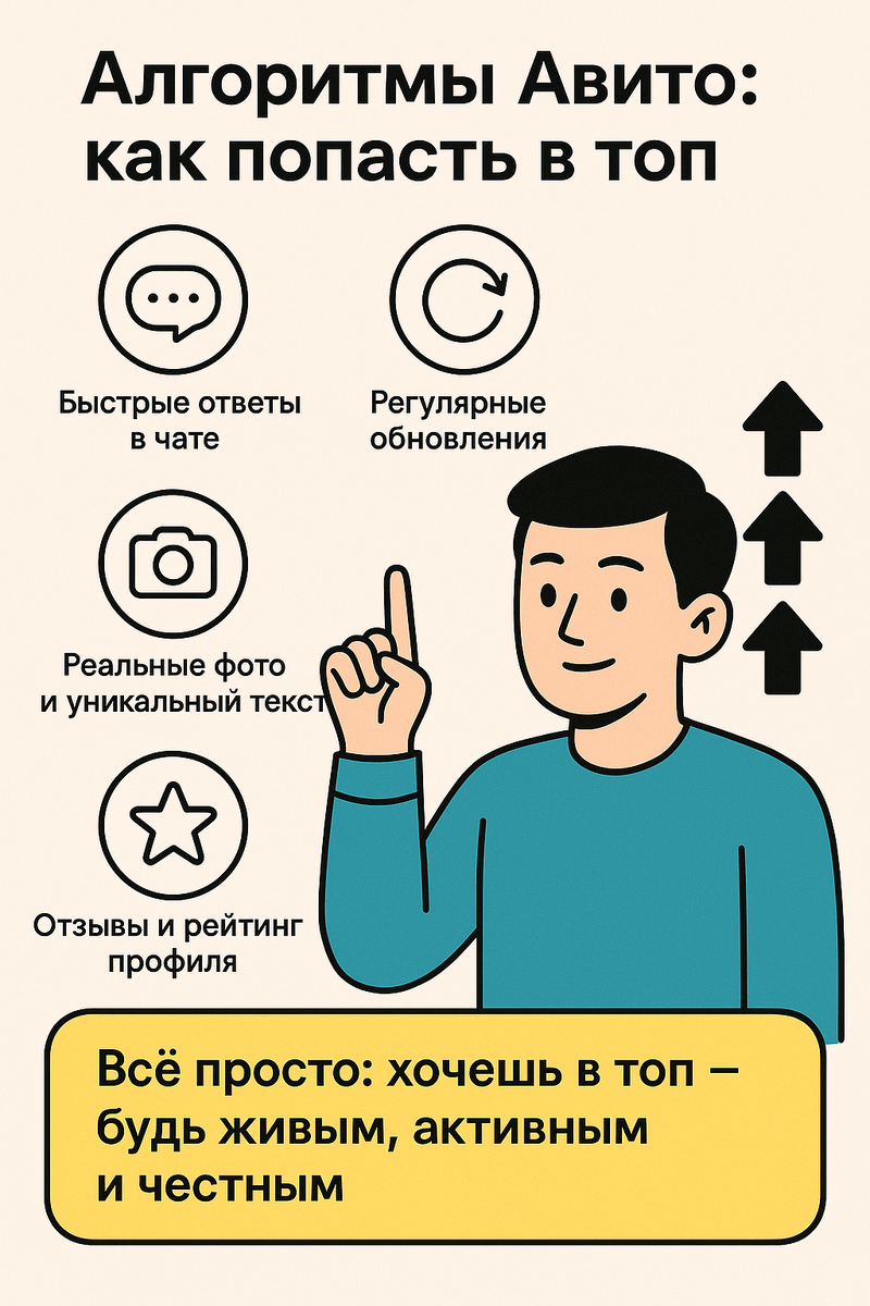 Авито ранжирует объявления не по “удаче”, а по активности.