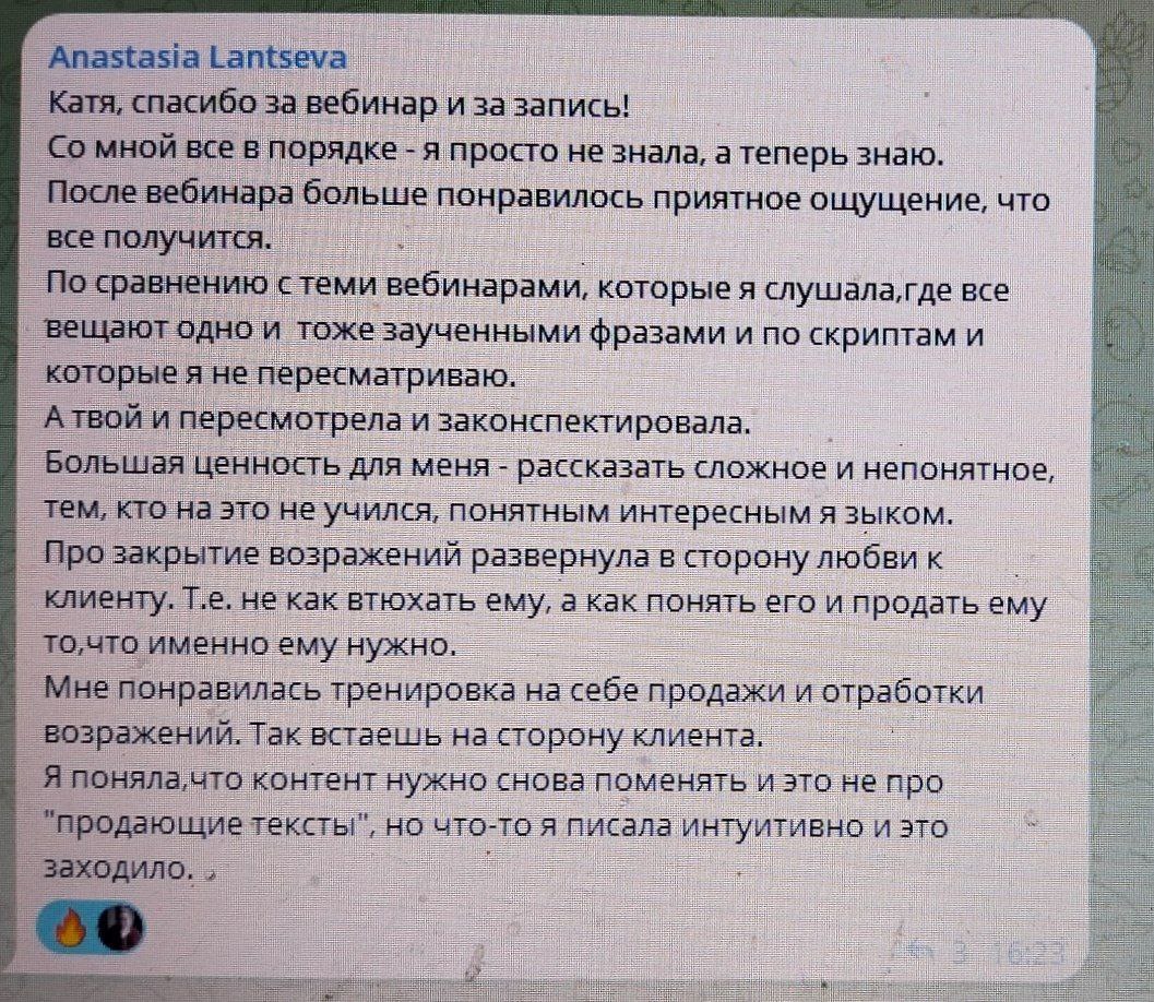 Ещё один отзыв на вебинар "Почему Вы продаёте, даже если ничего не продаёте".