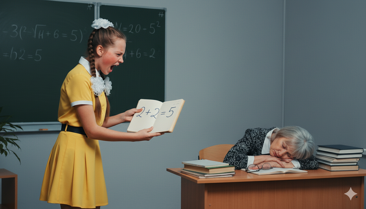 «В школе работала учитель математики — требовательная, жесткая, но учеников "тянула за уши". Родители накатали жалобу, она уволилась и стала давать частные уроки. Пришла новая училка, молодая, ко всем лояльная, но ничему не учила. Скоро экзамены, дети не знают от слова "совсем". И те же самые родители стали водить к старой математичке своих чад, но уже за 1000 рублей в час!»