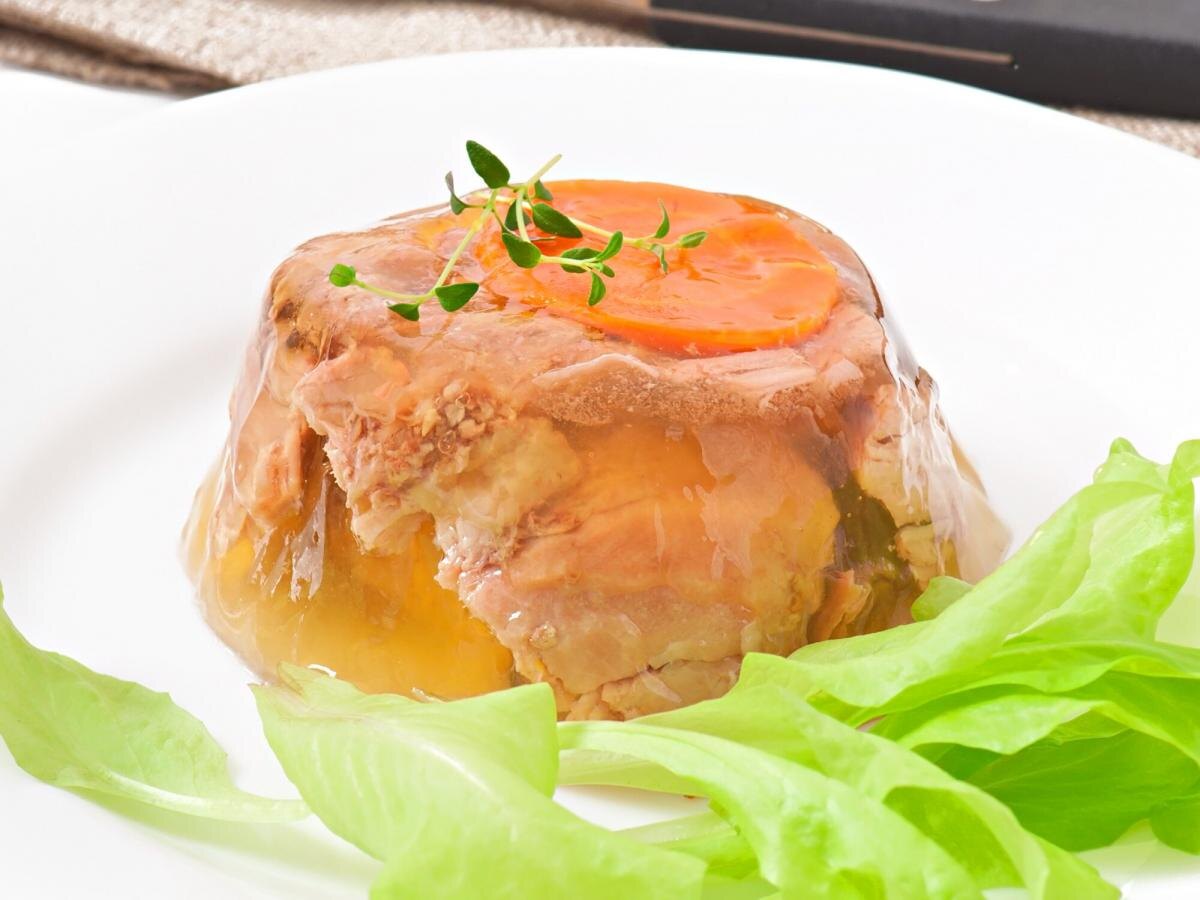 Аристократ среди холодцов. Его называют «Студень». Цвет — темнее, вкус — благороднее, консистенция — более плотная и менее жирная, чем у свиного.