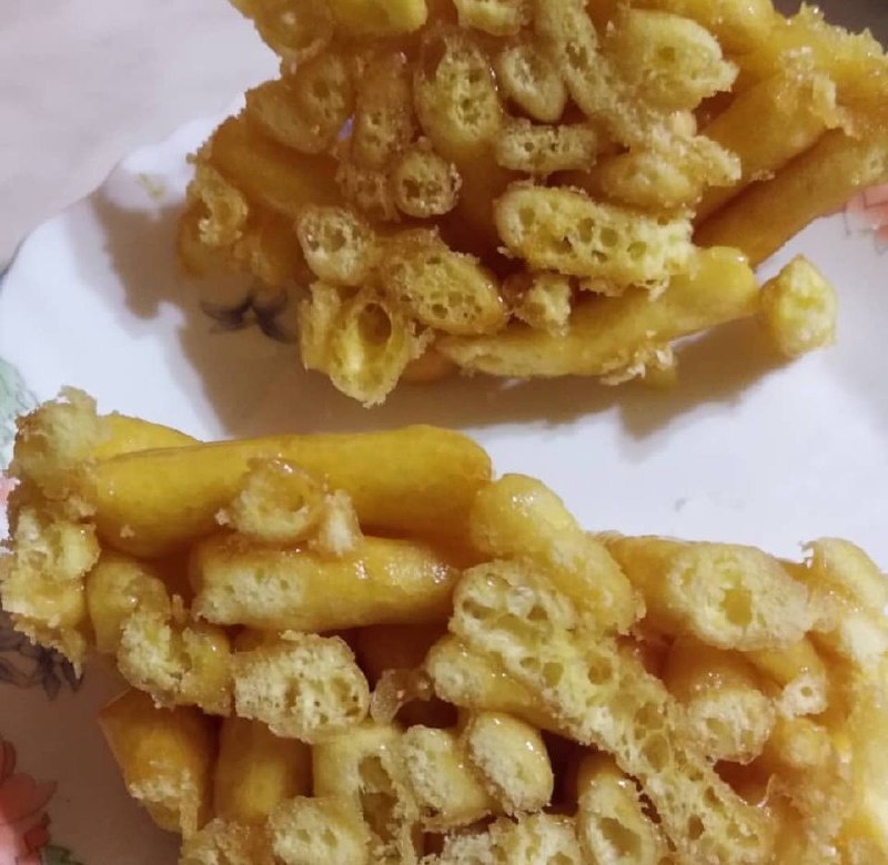 Мәрьямнән бик тәмле чәкчәк Сезнең өчен! Өч йомырка тулаем алына Өч йомырканың сарысы 1 чәй калагы майонез Чеметеп кенә тоз Ярты чәй калагы разрыхлитель Он салып токмач камыры кебек камыр басам. Өч җәемгә бүләм. Бик юка итмичә генә җәям.(чама белән 5 мм) Бераз камырны киптереп алам, ( кисәргә җайлы булсынга) Җәйгән җәймәне тасмалап кисәм Токмачтан калынрак итеп тагы кискәлим Кызган майга салып тиз арада пешереп тә алам. Баллар өчен 100 мл су, 200 гр песок кайнатам 3,4 минут Кушам 3 аш калагы бал Кайнатам 3,4 минут. Әзерлеген белер өчен салкын суга салып карыйм. Суда сироп җәелеп китмәсә әзер дигән сүз. Сиропны төшләребезнең Өстенә салып, болгатып, савытларга өеп, катырып куябыз.