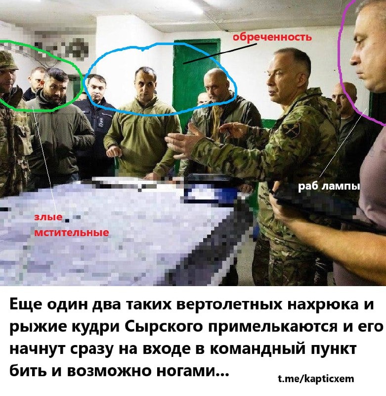 Итоговая фотография на память, после посещения Сырским командного пункта корпуса ВСУ и разработки плана вертолетной атаки. Одухотворенные перемогой лица соратников просто вопиют о будущей грандиозной победе