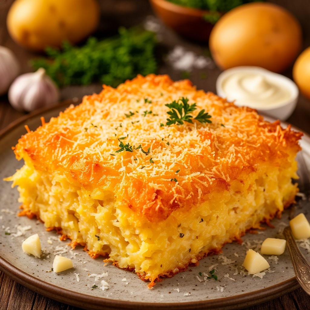 Хотите приготовить что-нибудь невероятно вкусное и при этом простое? Попробуйте запеканку из картошки с сыром и чесноком! Она идеально подходит для тех случаев, когда хочется чего-нибудь сытного и домашнего, но времени на сложные кулинарные изыски нет. Это одно из тех блюд, которое всегда получается на славу и точно понравится всей семье. Что нам понадобится: Как готовить: 1. Сначала займемся картошкой. Чистим ее, хорошенько моем и пока откладываем в сторону. 2. Теперь берем сыр и натираем его на крупной терке. Делим его на две части, одна нам понадобится для верха запеканки, другая для начинки. 3. Половину натертого сыра смешиваем с одним яйцом. Хорошенько перемешиваем. Этой смесью мы будем поливать запеканку сверху, чтобы получилась аппетитная золотистая корочка. 4. Оставшийся сыр отправляем в миску, добавляем туда майонез, измельченный чеснок (можно через пресс, можно мелко порезать) и одно или два яйца. Все тщательно перемешиваем до однородной массы. Эта сырная смесь придас