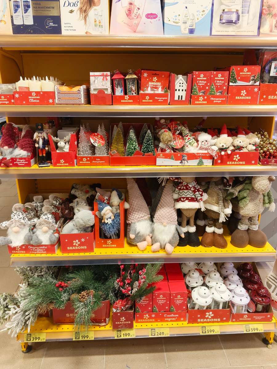 Доброго субботнего вечера! Какое-то странное у меня сегодня настроение. Вроде бы, всё хорошо, а хочется пореветь. Просто так, ни о чем, ни от чего. С утра сходила в поликлинику. У меня запись на флюорографию аж на 13 ноября, а мне надо к концу мед.осмотра всё нужное пройти. Еле уговорила рентгенолога принять меня сегодня, объяснила ситуацию. И ведь ни одного человека к ней нет, а она возмущается: "Как вы все мне надоели. Вы же не работаете бесплатно?" Ммм, будто она бесплатно работает. Направление есть, результат внесет в программу, всё ей оплатят. К чему это недовольство? На обратном пути зашла в "Пятерочку" за виноградом, а там новогодний декор выставили. Только ценники еще не повесили. Я в приложении посмотрела. Сейчас очень дорого всё, к концу декабря уже будет приемлемая цена. Гномы с подсветкой. Лосики и девчули с крылышками милейшие. Непонятно, зачем большие фигурки так запихали. Даже присев на корточки я не смогла их рассмотреть. В другой "Пятерочке" увидела распродажу канцтова