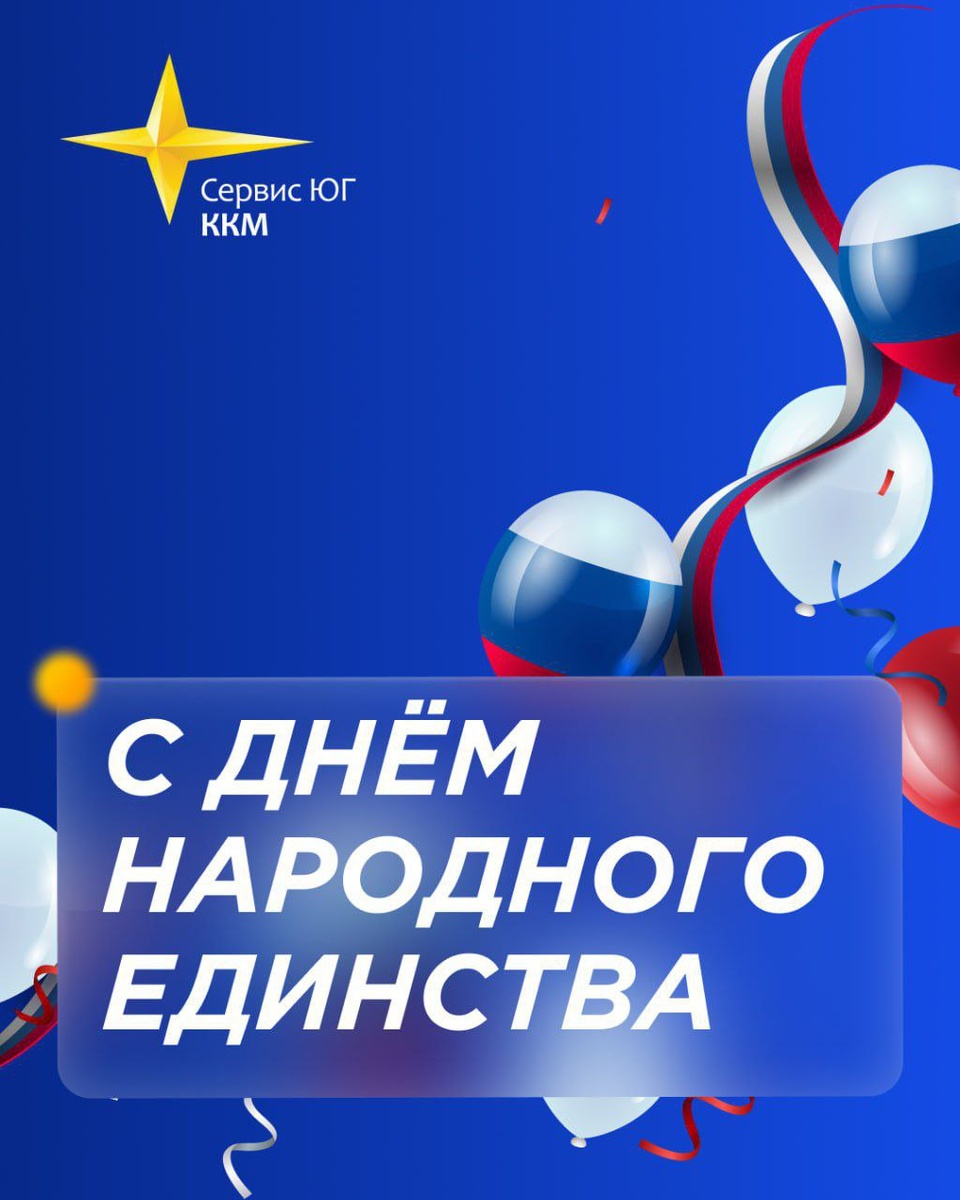 День народного единства — прекрасный повод вспомнить о том, что наша сила в сплочённости, взаимопомощи и уважении друг к другу. Именно эти принципы мы ценим в нашей команде и в отношениях с вами, нашими клиентами. От всего коллектива «Сервис-ЮГ-ККМ» желаем вам мира, добра и благополучия. Пусть эти выходные подарят тепло общения с близкими и зарядят новой энергией! А чтобы праздники прошли без лишних забот, мы остаёмся на связи. Пожалуйста, обратите внимание на наш график работы: 🟢2, 3, 4 ноября (вс-вт): выходные дни. 🟢С 5 ноября (среда): Ждём вас во всех наших залах в обычном режиме. Важно: Если вы планируете визит в один из наших филиалов, пожалуйста, уточните часы его работы у вашего менеджера. И помните, наша служба технической поддержки по телефону 8 (800) 2004-900 работает для вас круглосуточно, без перерывов и выходных. Хороших вам праздников!