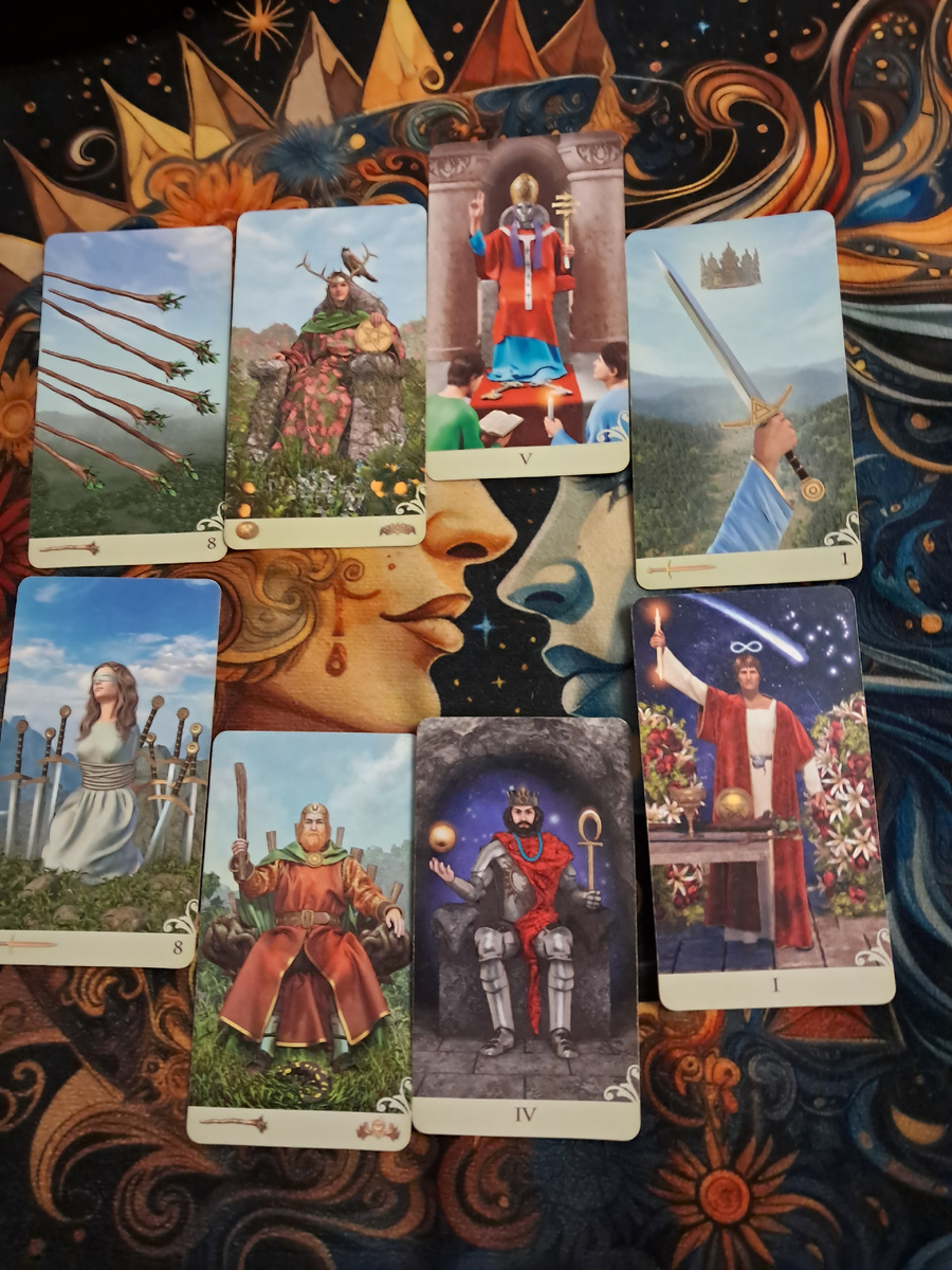 Главное предупреждение: Конечная карта 8 Мечей — это важный сигнал. Весь расклад говорит о силе и потенциале, но итог указывает на риск оказаться в ментальной ловушке. Возможно, традиции (Иерофант) и структура (Император) в какой-то момент начнут восприниматься как ограничение. Пара должна помнить о ясности (Туз Мечей) и использовать свою волю (Маг), чтобы не стать заложниками собственных страхов или условностей. Им нужно быть смелыми, чтобы "разрубить узлы" своих сомнений.