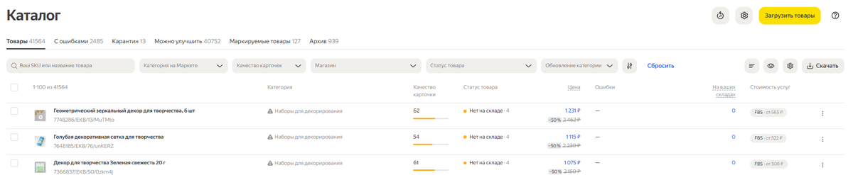 1. Чтобы массово перенести товары в архив, воспользуйтесь Excel-файлом: нажмите на кнопку "Загрузить товары" и выберите шаблон "Все товары разом" или "По категории". В нем укажите значение "Да" в столбце "В архиве" и загрузите файл обратно. Если ячейки останутся пустыми, товар не скроется с витрины. 2. Скачать все товары вы можете в каталоге, нажав на кнопку "Скачать". Необходимое поле находится в столбце "AN" шаблона. 3. Удаляем лишнии товары оставляем товары только которые хотим загрузить и перевести в архив, Маркет может только файлы загружать не больше 10 мб. 4. Выбираем "Все товары разом" 5. Если все правильно сделано то товары будут загружены. Если нужно остальные архивировать то нужно кликнуть и скачать товары, потом архивировать